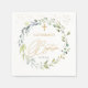 Baptême bébé/serviettes en papier de Christening. Cette conception présente une illustration de feuillage verdoyant et de feuilles d'eucalyptus en aquarelle. Au-dessus des feuilles, des confettis ornent le dessus des serviettes (leurs images peuvent être enlevées). Sur le dessus de la couronne il y a une image de croix.