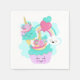 Serviettes en papier avec une jolie illustration représentant un cupcake et de la crème glacée souriant avec joie. Un arc-en-ciel et des coeurs entourent le dessin. Un joli nuage moelleux sourit aussi de bonheur. Le cupcake et la crème glacée sont surmontés d'une corne de licorne branchée. Design mignon et adorable, plein de joie.