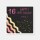 Cute Girly Wave Star Motif Anniversaire de fête Napkin - personnalisez le nom, le numéro d'âge et souhaiter un joyeux anniversaire. Des serviettes avec des vagues colorées et des étoiles jaunes sur le noir - idéal pour une fête de fille.