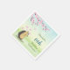 Un joli hérisson jouant avec des bulles de savon en forme de coeur rose sous un cerisier rose. L´adorable plaque de papier d´anniversaire de fille sur mesure animal.