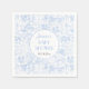 Élégante serviettes en papier Baby shower Floral Toile de Jouy, avec un charmant thème animal safari. Cette serviette en papier, magnifiquement conçue, présente une montgolfière ainsi que d'adorables animaux de safari comme une girafe, un éléphant, un zèbre et un lion, le tout face à un arrière - plan de chinoiserie à fleurs bleues. Avec son esthétique vintage et sa typographie gracieuse, cette serviette Papier donne le ton d'une célébration intemporelle. Entièrement personnalisable pour correspondre aux détails de votre événement, c'est le choix idéal pour un baby shower à thème safari pour garçon, alliant charme et sophistication. Partie d'une collection. Éléments correspondants disponibles.