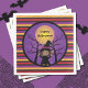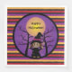 Serviettes en papier coloré à rayures rouge, orange, violet et noir. Au milieu se trouve l'illustration d'une adorable fille afro-américaine en costume de sorcière. Ajouter votre propre texte est très facile grâce au modèle. Ces serviettes sont idéales pour les enfants fête d'Halloween, anniversaire de enfant et toute autre occasion amusante. Recherchez les plaques de papier correspondantes dans notre collection ci-dessous. © ArianeC Illustrations-Tous droits réservés