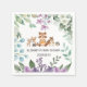 Papier Napkin Un adorable aquarelle peinte à la main pays verdure rustique animaux de la forêt livres de bois pour le baby shower avec un ours mignon, cerf, raton laveur, lapin, hérisson, et un renard dans la couleur des bois neutre. avec feuilles verdoyants et branches d'arbres. Invitation de baby shower parfaite pour toutes les saisons, sans distinction de genre !