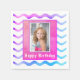 Ces serviettes colorées de fête d'anniversaire avec une photo sont parfaites pour les fêtes d'enfants. Ondes Abstraites aux couleurs rose et bleu. Changez la photo avec la vôtre. Vous pouvez également modifier le texte Joyeux anniversaire.
