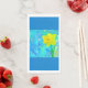 Cette serviette d'invité en papier arbore un collage numérique composé de plusieurs couches de peintures, de textures et de scans. La jonquille ensoleillée "apparaît" sur le fond bleu.
