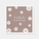 Une invitation à l'anniversaire de style boho avec un arrière - plan rose pâle, de couleur terre avec des fleurs de marguerite blanche.