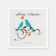 Élégant damas floral blanc et bleuets sur la branche et le coeur orange