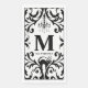 Cette serviette d'hôte est décorée d'une silhouette de lustre, de chauves-souris, d'une araignée et d'un chat noir sur un arrière - plan damassé noir et blanc. Vous pouvez personnaliser avec votre initiale et votre nom de famille.