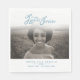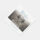 Buffet de réveil funéraire ou boissons simples dans notre coeur photo pour toujours blanc avec des serviettes en texte bleu gris. Des serviettes simples mais élégantes remplacent simplement le texte et le support photo par votre propre photo, nom et date de vie. La typographie originale et dans nos coeurs toujours design graphique par Sarah Trett. www.sarahtrett.com pour www.mylittleeden.com (Crédit photo de Guilherme Stecanella sur la photo modèle Unsplash est juste une image d'espace réservé à remplacer).