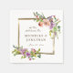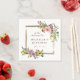 Écriture de citation inspirée des serviettes mariages personnalisées dépeignent d'élégants arrangements d'aquarelle fleurie, y compris des roses pêche, rose et violet et de la verdure sur un cadre doré. Ils présentent la Bible Verse, "Les deux deviendront un." Customisez avec les noms et la date.