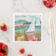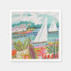 Deux voiliers et Cottage II de Karen Fields. Il comprend deux voiliers flottant dans l'eau entourés de fleurs colorées et de chalets.