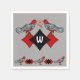 De mignons vers comiques dans une étreinte en forme de coeur sont partagés par une paire d'oiseaux en papier de tissu rouge et gris qui essaient de se stabiliser au sommet d'un trio de diamants incurvés rétro placé sur le point. Smack-dab au milieu du diamant central est un champ de texte personnalisé pour votre monogramme tandis qu'une bordure inférieure répète le trio de diamants rouges et noirs alternés avec des oiseaux uniques. Ce design original et heureux emballe vraiment ces serviettes jetables. GRANDES économies sur commande en vrac!