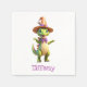Préparez-vous à être surpris par notre adorable Dinosaure Magicien Vert ! Ce charmant design présente un mignon dinosaure habillé d'une cravate casquette marron et pourpre, prêt à ajouter une touche de magie à votre journée.