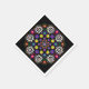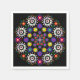 Serviettes en papier mandala en noir, jaune, bleu et pourpre.