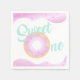 Célébrez votre petit sucré avec cette serviette Sweet One, avec l'icône de la beigne et les bords roses de l'arrosage.