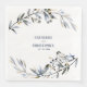 Une élégante serviette de mariage avec des tiges bleu poussiéreux dessinées à la main avec des feuilles et des baies et deux oiseaux chiches, avec vos noms et date numérique en bleu poussiéreux.