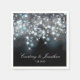 Célébrez votre mariage avec ces serviettes en papier personnalisées romantiques avec des lumières scintillantes et brillantes posées contre un arrière - plan bleu-noir dramatique. Ajoutez les noms de la mariée et du marié et la date du mariage pour personnaliser. Egalement disponible à midi et le soir serviettes de table. Parfait pour un événement élégant - mariage de cravates noires, mariage d'hiver des merveilles, dîner de répétition et bien plus encore.