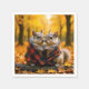Deux écureuils sont enveloppés chaudement dans une couverture en plaid de buffle rouge et noir, nichés sur une rondelle au milieu d'un tapis de feuilles déchus