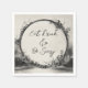 Cette serviette gothique d'Halloween présente une couronne de branches tordues, de fleurs et d'ombres subtiles, encerclant l'expression "Mangez, Buvez et Soyez effrayants". Le style de gravure monochrome ajoute une touche élégante mais étrange.