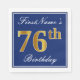 Serviette En Papier Elégant bleu, Faux Gold 76e anniversaire; Nom pers