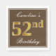 Cette conception simple et élégante de serviette en papier comporte un message comme "52e anniversaire de Caroline" (avec le "52e" ayant une fausse couleur dorée) dans une zone carré de couleur marron avec une bordure simple. Le nom est dans un texte de type script de couleur blanche, et peut être customisé. Des serviettes comme celles-ci pourraient peut-être être utilisées à une fête d'anniversaire pour quelqu'un qui célèbre son cinquante-deuxième anniversaire. [~Z0000139]