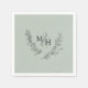 Élégante Serre de couronnes Monogram Laurel Sage Mariage vert... Notre serviette de mariage botanique présente une élégante couronne de laurier feuillus arborant les initiales de la mariée et du marié dans une typographie serif romantique sur un arrière - plan vert sage tendance. Tout le texte peut être facilement révisé sur le modèle de personnalisation.