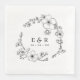 Élégante serviettes de Mariage noir et blanc avec des fleurs de trait noir en forme de cercle et vos initiales et votre date de mariage au centre.