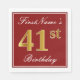 Cette conception simple et élégante de serviette en papier comporte un message comme "41e anniversaire de FirstName" (le "41e" ayant une fausse couleur dorée) dans une zone carré de couleur rouge avec un contour de bordure simple. Le nom est dans un texte de type script de couleur blanche, et peut être personnalisé. Des serviettes comme celles-ci pourraient être utilisées à une fête d'anniversaire pour quelqu'un qui célèbre son quarante et unième anniversaire. [~Z0000138]