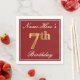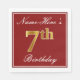 Cette conception simple et élégante de serviette en papier comporte un message comme "Name-Here’s 7th Birthday" (avec le "7th" ayant une fausse couleur dorée) dans une zone carré de couleur rouge avec un contour de bordure simple. Le nom est dans un texte de type script de couleur blanche, et peut être personnalisé. Des serviettes comme celles-ci pourraient être utilisées à une fête d'anniversaire pour quelqu'un qui célèbre son septième anniversaire. [~Z0000138]