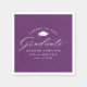 Serviettes élégantes de graduation avec une casquette de graduation avec l'expression "Bravo au diplômé" dans un script de calligraphie blanc sur un arrière - plan violet. Personnalisez les serviettes pourpres avec le nom du diplômé, le nom de l'école et l'année de diplôme. Les serviettes de fin d'études simples sont parfaites pour votre fête de fin d'études secondaires ou collégiales.