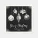 Add a touch of holiday glamour to your festive table with this black and silver Christmas napkin. Featuring five hanging ornaments - each with a unique design including glittering stars, snowflakes and florals - this layout blends classic with modern elegance. Set against a rich black background with golden sparkles, it's perfect for upscale gatherings, winter parties, or seasonal celebrations.