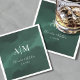 Serviette En Papier Élégant Simple Monogramme Noms Mariage vert