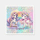 Ajoutez une touche de magie à votre fête avec ces serviettes de licorne enchanteresses ! Dotés de deux adorables licornes, d'un arc-en-ciel radiant et d'accents de parties scintillant étincelants, ces serviettes apporteront un charme fantaisiste à toute célébration sur le thème de la licorne. Parfait pour garder les petites mains propres tout en ajoutant un élément décoratif amusant à la table. Personnalisez-les avec le nom de votre enfant pour une touche vraiment magique. Ces serviettes aux couleurs pastel sont idéales pour les gâteaux, les snacks ou les fêtes d'anniversaire !