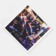 L'oeuvre de ces serviettes en papier est une photographie originale d'un ensemble de tambours. Les tambours noirs brillants avec leurs jantes argentées reflètent les couleurs des lumières du studio, blues, rouges et verts. Des cymbales au-dessus des tambours attendent d'être frappées. Il y a un texte facultatif qui dit "Le Beat continue". Ceci est configuré pour que vous personnalisiez ou supprimiez si vous le souhaitez.