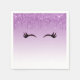 Serviettes en papier au design design design et tendance. L'arrière - plan est un dégradé violet avec une image de parties scintillant faux scintillant qui descend du haut. Une paire de cils mignons ceinturés sous l'image de la parties scintillant.