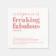 Fun facts napkins pour fabuleux "fabuleux" fête d'anniversaire ou thème de graduation en rose corail avec texte personnalisé pour écrire dans vos FABULEUX FAITS sur la fille d'anniversaire ou le gars dans un design de typographie audacieux et moderne.