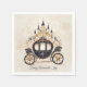 Cet élégant design présente un chariot de conte de fées féminin en bleu marine avec un château princesse derrière décoré de fleurs roses rousses.