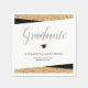 Cette serviette en papier de fête de graduation présente un design moderne dans les tons noir et gris et faux or accents de parties scintillant,.