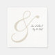 Faux serviettes de mariage de notation manuscrite avec grande esperluette exagérée en beige et causal faux manuscrit marié et nom du marié et mariage date en noir.