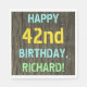 Ce design amusant de serviette de fête d'anniversaire comporte un message comme "HAPPY 42nd BIRTHDAY, RICHARD!", où le nom peut être personnalisé. L'arrière - plan présente un motif rustique, brun, imitation bois de grain. Le texte du message personnalisable est composé de couleurs comme le bleu, le jaune et le vert, et il a un aspect inspiré de celui du lettrage peint et recouvert de pochoirs. Des serviettes comme celles-ci pourraient être utilisées à une fête d'anniversaire pour quelqu'un qui célèbre son quarante-deuxième anniversaire. [~Z0000292]