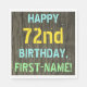 Ce design amusant de serviette de fête d'anniversaire comporte un message comme "HAPPY 72nd BIRTHDAY, FIRST-NAME!", où le nom peut être personnalisé. L'arrière - plan présente un motif rustique, brun, imitation bois de grain. Le texte du message personnalisable est composé de couleurs comme le bleu, le jaune et le vert, et il a un aspect inspiré de celui du lettrage peint et recouvert de pochoirs. Des serviettes comme celles-ci pourraient peut-être être utilisées à une fête d'anniversaire pour quelqu'un qui célèbre son soixante-douzième anniversaire. [~Z0000292]