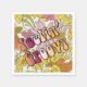 Forfait de 50 serviettes de cocktail en papier blanc avec une image vintage super des années 1960 de fleurs rose, orange et jaune sur le blanc et la phrase optionnelle "Feelin' Super" en lettrage rose, orange et jaune sombre des années 60. Voir la serviette en tissu assortie, serviette de cuisine, set de table en tissu, set de table en papier et dessous de verre. Voir l'ensemble de la collection Psychedelic 60s Napkin dans le FOOD/BEV | Section Linge.