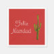 Feliz Navidad napkin, avec un cactus saguaro vert sur un arrière - plan rouge. Une façon amusante de dire Joyeux Noël en espagnol à votre événement de vacances. Les lettres blanches peuvent être personnalisées avec votre propre message !