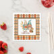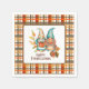 Les serviettes en papier sur le thème Thanksgiving mignonne sont équipées d'une paire de gnomes tenant citrouille et tarte avec arrière - plan plaid couleur automne et texte "Bon thanksgiving". Idéal pour des dîners Thanksgiving sans chichi ou des cafés de bureau.