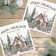 Add a festive touch to your holiday table with this elegant Christmas napkin, featuring a cozy watercolor winter cabin scene along the bottom. The cabin is nestled among pine trees and holly berries, with snow covering the ground and roof, a wreath on the door, and soft smoke rising from the chimney—bringing classic holiday charm to any celebration.