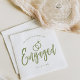 Un mouchoir en papier avec une écriture script amusante et unique, personnalisé spécialement pour votre fête de fiançailles. Il comporte le mot fiancés avec des alliances posées autour. En dessous et au-dessus se trouvent les noms des mariés et la date des fiançailles.