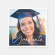 Cette serviette en papier tendance de fête de remise de diplômes présente un script blanc écrit à la main sophistiqué sur une photo chic et complète de votre diplômé. Customisez ce décor grandiose avec votre photo de lycée, collège ou université derrière vos détails seniors.