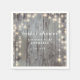 Les serviettes en papier de célébration de la douche nuptiale sont en bois foncé rustique avec des lumières de douche. Correspond aux éléments de cette collection.
