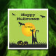 Les chauves-souris dans le ciel volent au-dessus d'un chat noir aux yeux verts et levant un jack ou une lanterne sur ces serviettes en papier de la fête d'Halloween. CORRESPONDRE des articles dans notre magasin.