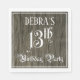 Ce design de serviette en papier orné et fantaisie, sur le thème de l'anniversaire, comporte un nom personnalisé et le message "13e anniversaire fête". Le grand numéro "13ème" et les mots "fête d'anniversaire" sont dans un texte élégant de style script. L'arrière - plan a un motif imitation/imitation bois inspiré des grains. Des serviettes en papier luxueuses et élaborées comme celle-ci peuvent être utilisées lors d’une fête d’anniversaire qui se tient pour célébrer le treizième anniversaire de quelqu’un. [~Z0000564]